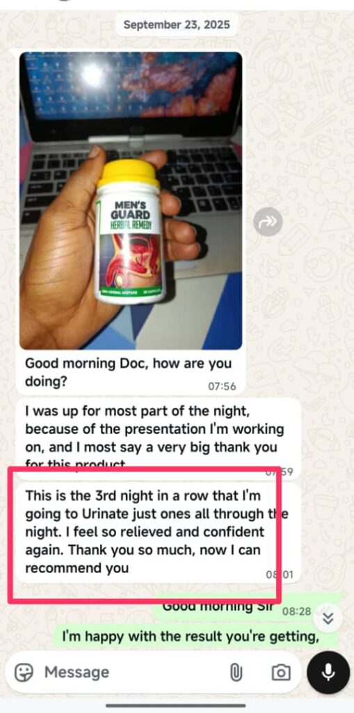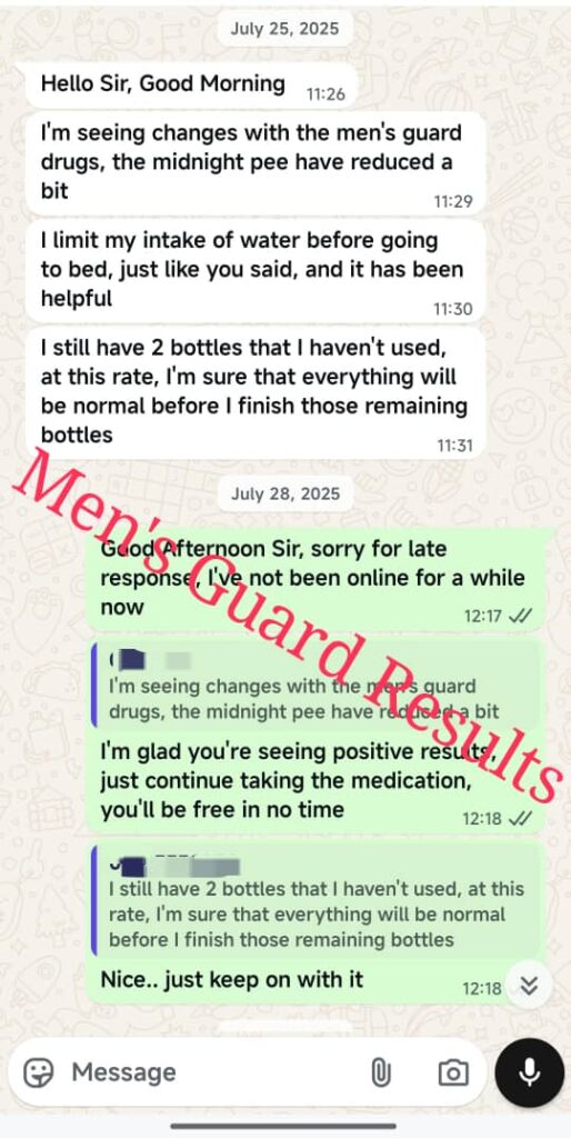 I used to think prostate enlargement was a problem for older men until I was diagnosed at 41. I couldn’t sit through meetings or even attend church without standing up to ease myself. I tried antibiotics and several hospital prescriptions, but nothing gave lasting results. Men’s Guard Herbal Remedy changed my story. Within a month, the constant urge reduced, and I finally sleep peacefully. This product is a blessing to men suffering from enlarged prostate.