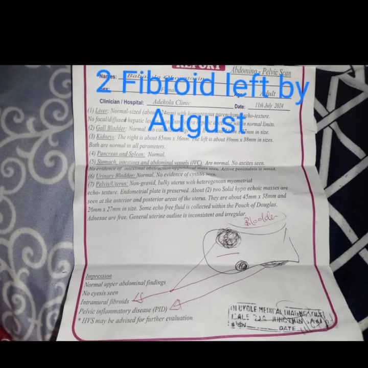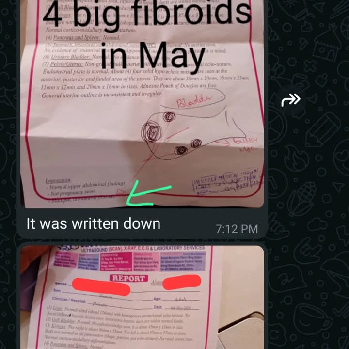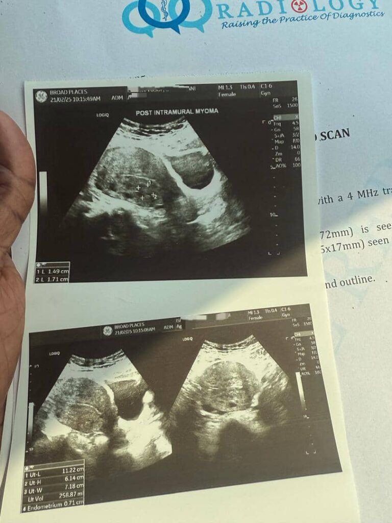 Madam blessing’s case of 3 intramural myomata in the anterior(47x33mm), posterior(41x23mm) and fundal(34x33mm) uterine body shrunk drastically to just(15x17mm) within a month of using ultimate fibroid crusher